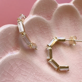 Gold 4mm Square Cubic Zirconia Stud Earrings | Champagne
