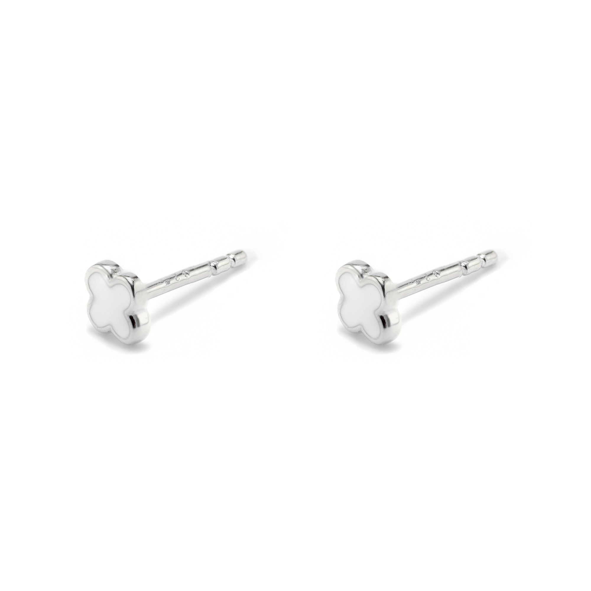These delicate white clover stud earrings are crafted from sterling silver and finished with a warm gold plating. Their subtle charm adds a gentle touch of elegance to any outfit, making them perfect for everyday wear or special occasions. Lightweight and comfortable, they offer a graceful way to express your style with a supportive, uplifting vibe.