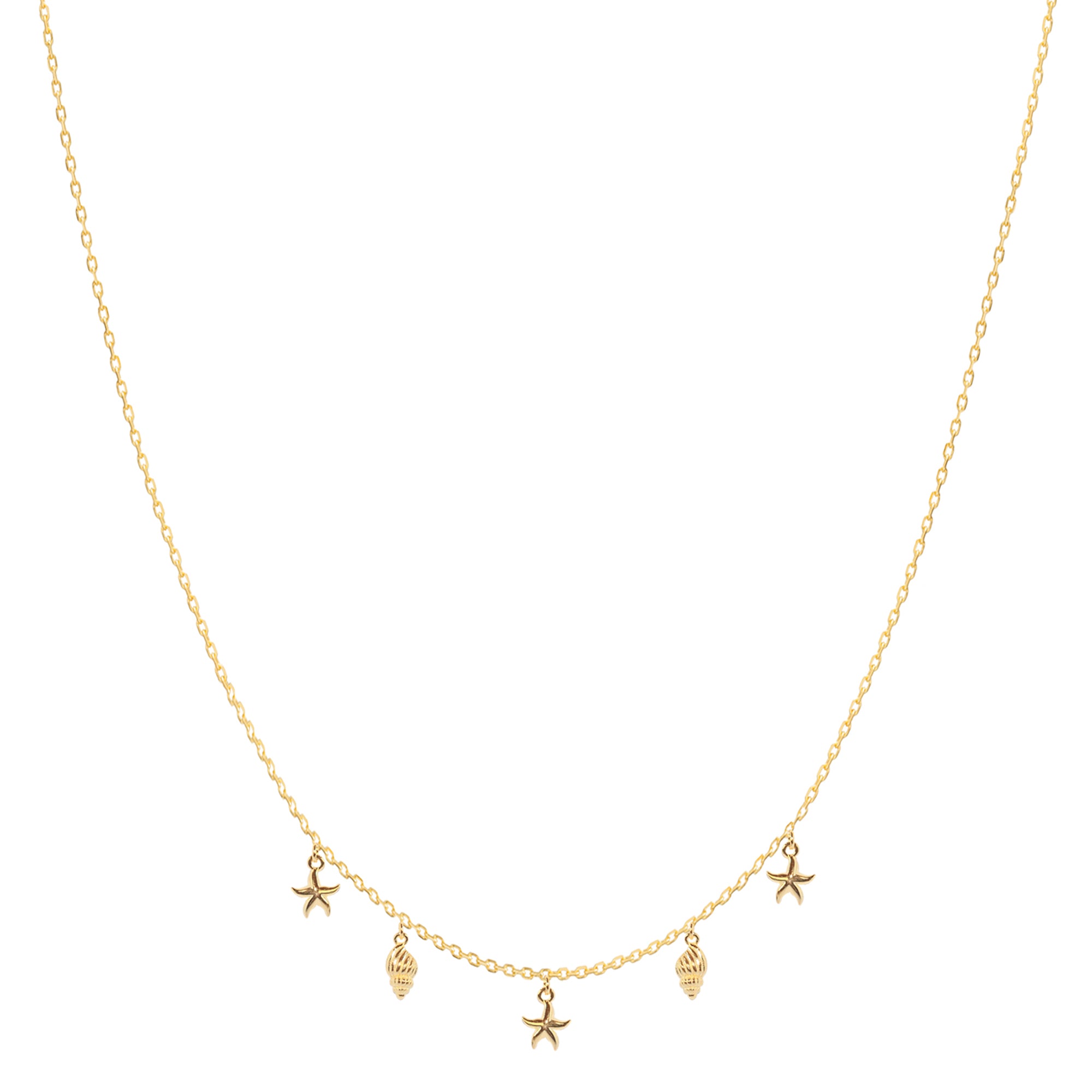 Gold Plated Sterling Silver Starfish and Sea Shell Charm Necklace