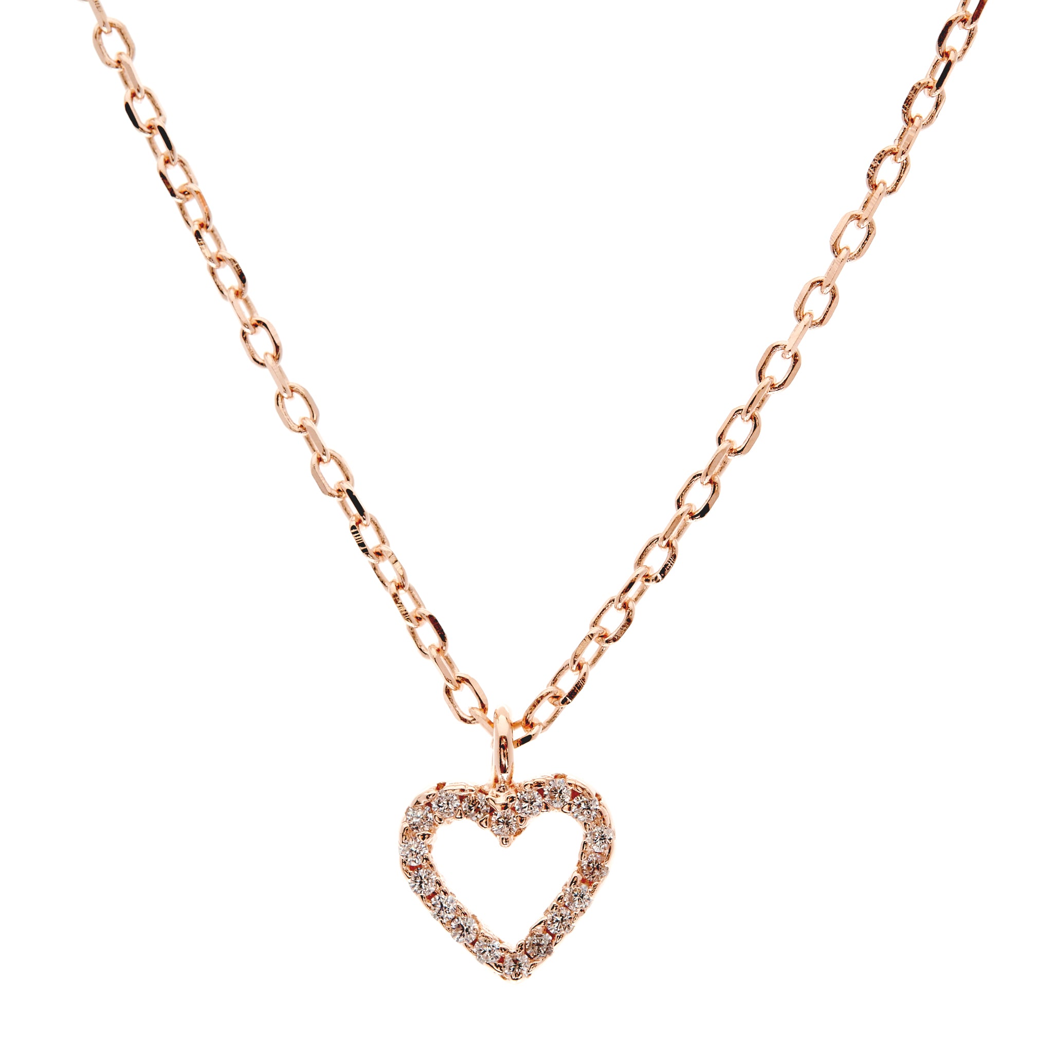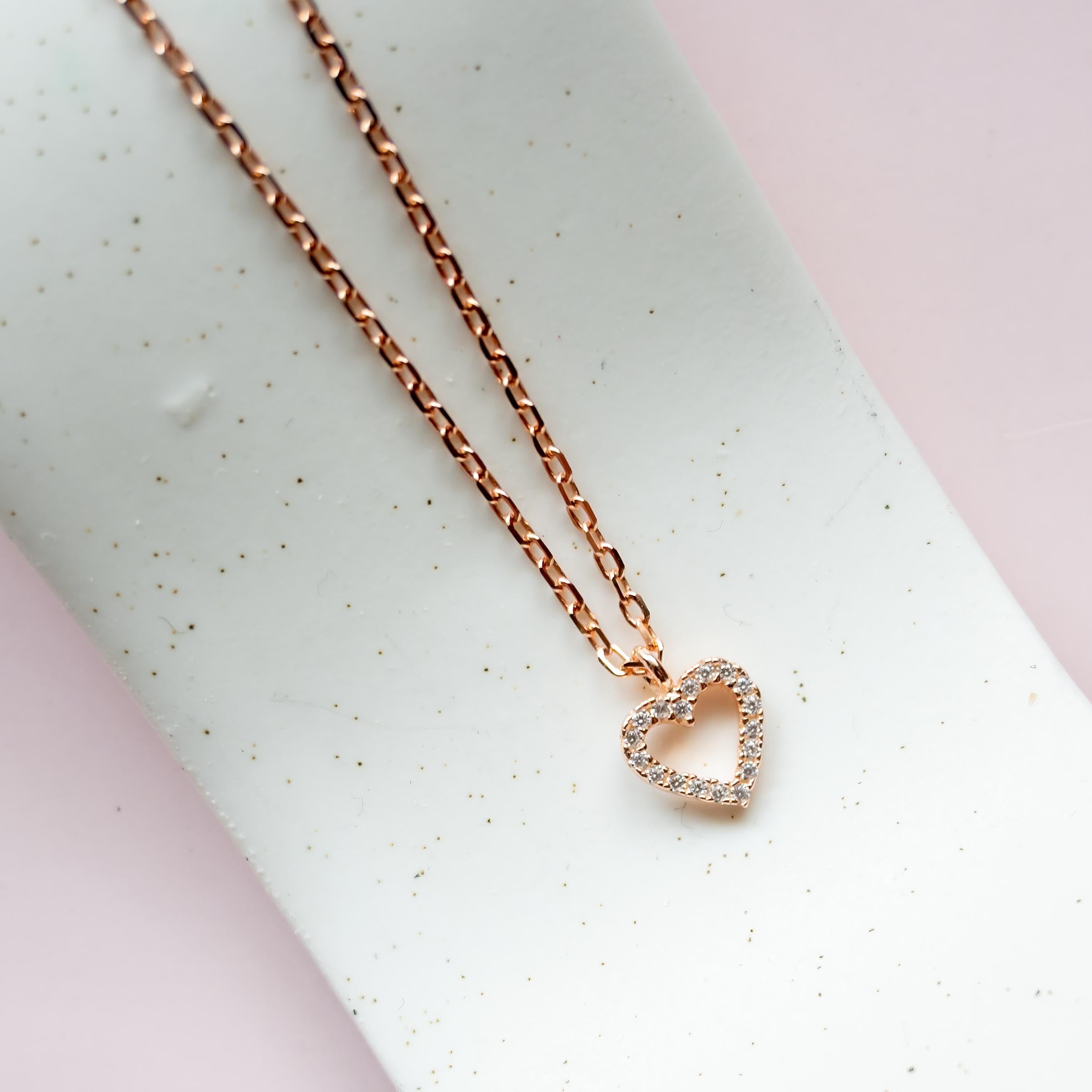 Wear your heart on your sleeve—literally! This rose gold plated necklace features a shimmering cubic zirconia heart that catches the light with every move. Perfect for adding a touch of sparkle to your everyday look or making a sweet statement. Delicate, dazzling, and oh-so-charming, it's the kind of piece that makes you smile every time you catch your reflection.